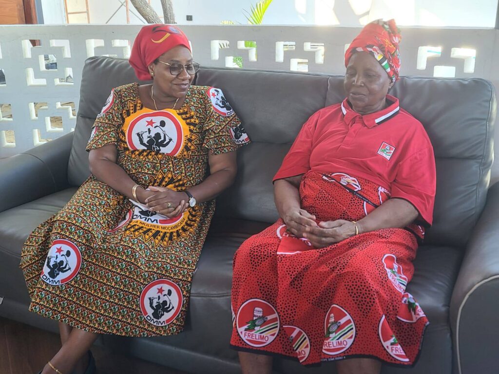 A Secretária-Geral da Organização da Mulher Moçambicana (OMM), Cidália Chaúque, que efectua uma visita de trabalho à província de Sofala, manteve, este Sábado, 21 de Junho, no distrito de Dondo, um encontro de cortesia com a mamã Helena dos Santos Chiremba, a mãe do Presidente da FRELIMO e da República de Moçambique, Daniel Chapo. O encontro serviu para a dirigente do braço feminino da FRELIMO colher ensinamentos e aprender com a experiência de vida da mamã Helena dos Santos, que outrora carregou a nobre responsabilidade de dar os primeiros valores humanos ao homem que hoje conduz os destinos do país e do povo moçambicano. A mamã Helena agradeceu pela abertura da camarada Cidália Chaúque em reservar parte da sua agenda para este encontro, o qual descreveu como um gesto se respeito e consideração, tendo desejado êxitos à secretária-geral da OMM na direcção da organização.
