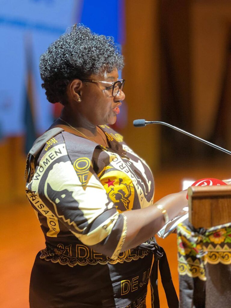 A Camarada Secretária Geral da OMM, Cidália Chaúque, intervindo durante as festividades de nível central, na Cidade de Maputo, reconheceu a luta que tem sido travada pela mulher em Moçambique para o alcance dos seus direitos e objectivos, bem como na contribuição dos números que tanto hoje orgulham a mulher no contexto histórico e do desenvolvimento do país.